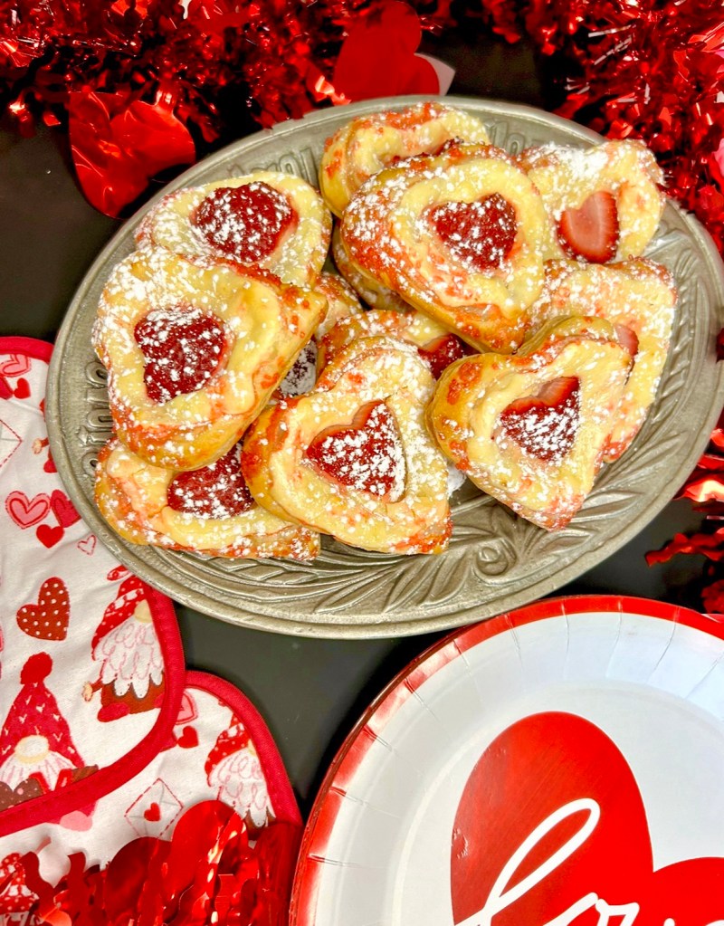 These heart shaped Strawberry cheese danishes are an easy elegant breakfast idea for Valentine’s Day.