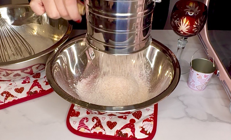 I highly recommend using a Sifter for your dry ingredients to incorporate them better. This old school one works the best in my opinion.