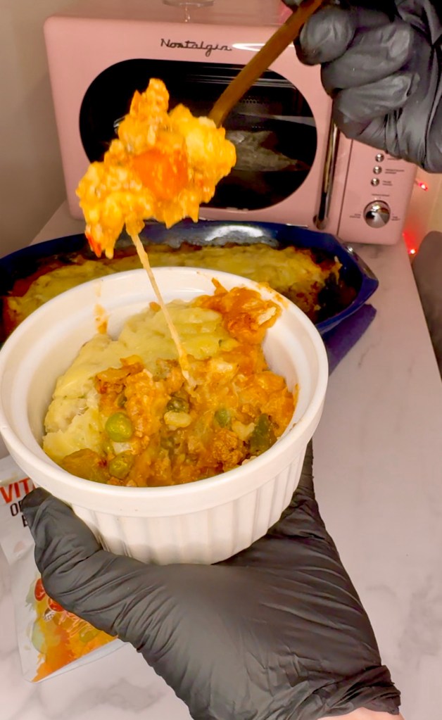 Then when you’re ready, you can just take your frozen leftover mashed potatoes and put them on top of your cottage pie. I happened to make this dish the next day, but if you’re storing the leftover mashed potatoes longer, I would freeze them first and then wrap them in some Saran Wrap or a ziploc bag and then put them back in the freezer.