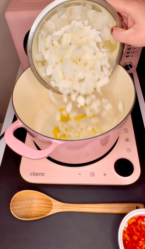 I use this Dutch oven because, well, she’s beautiful and I was gifted her for Christmas from my bestie! But also, she works perfectly on the induction burner. Not all pots and pans will work but cast iron will and that’s the best cookware for flavor anyways.