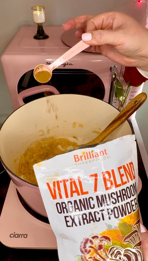 - 1 tsp each mushroom powder, onion powder, garlic powder, black pepper and dried thyme