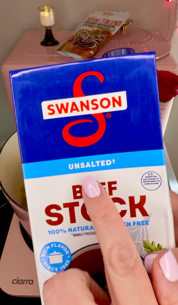 I use mostly this unsalted beef stock for this French onion soup pasta.