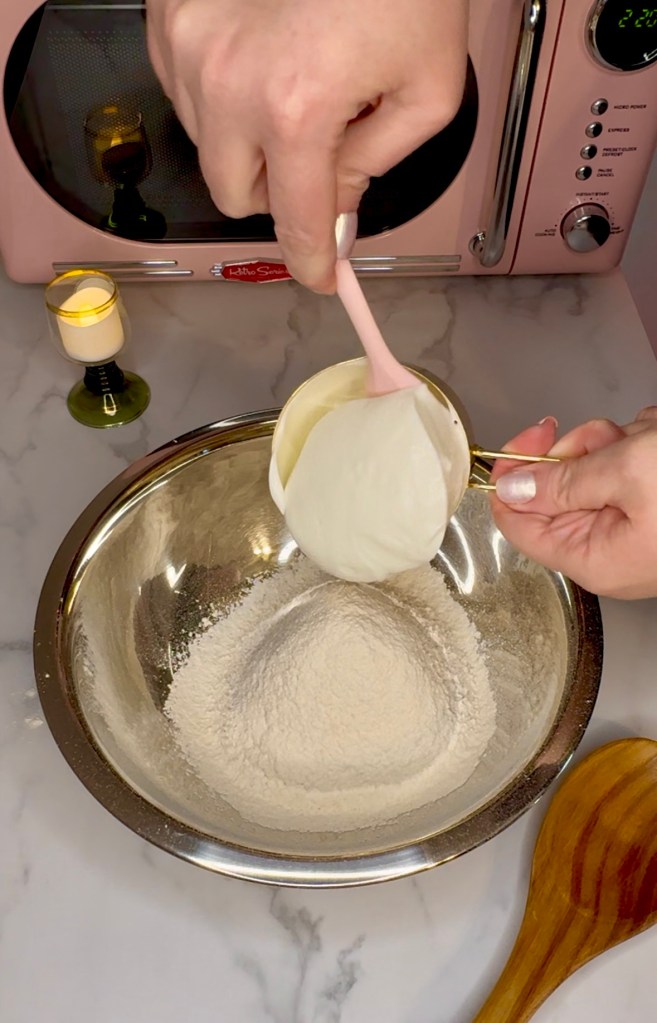 I used my gold measuring cup to measure 1 cup plain non fat Greek yogurt.