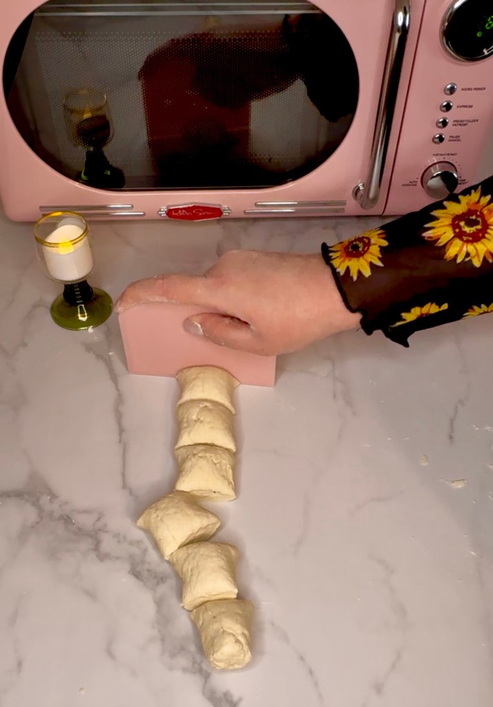Then I just use my bench scraper to cut them into about one inch size pieces.