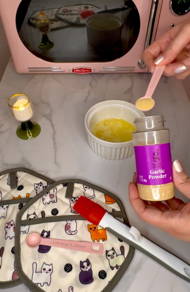 And then add 1/2 tsp garlic powder and 1:4 tsp parsley flakes. This is what is going to give these pretzel bites more flavorful since we aren’t adding salt. You certainly can, though!