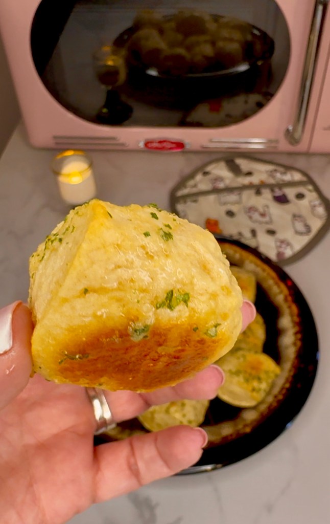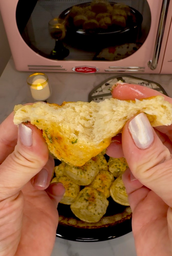 And fluffy inside! They’re not exactly 100% as good as the traditional pretzel bites but I’d say they’re 90% there and that’s an A! They do the trick, for sure!