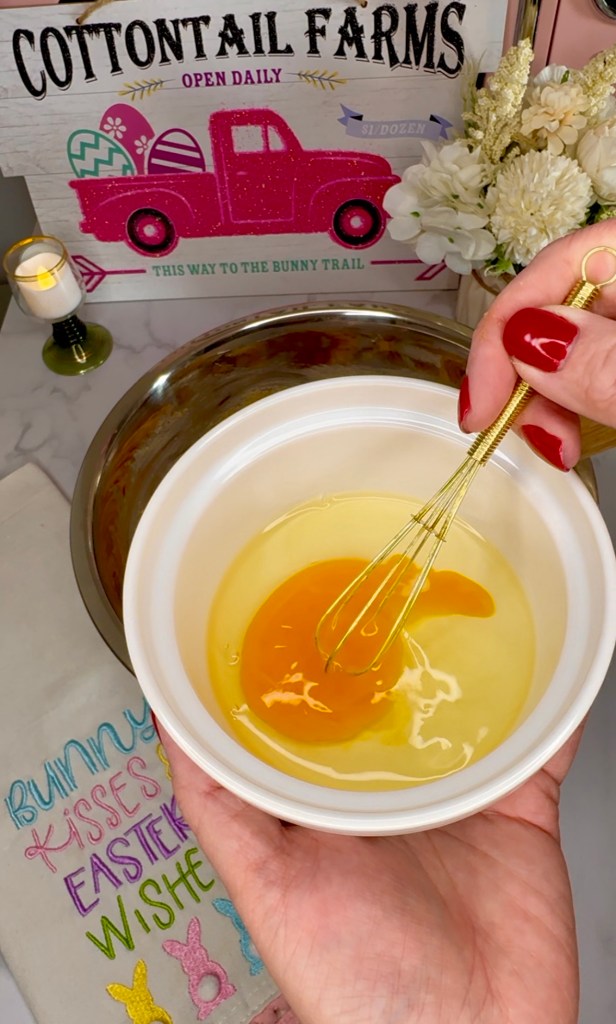 Whisking your egg before adding it to your wet ingredients is always a good idea. Side note, I also use these white ramekins in my air fryer all the time. Genius!