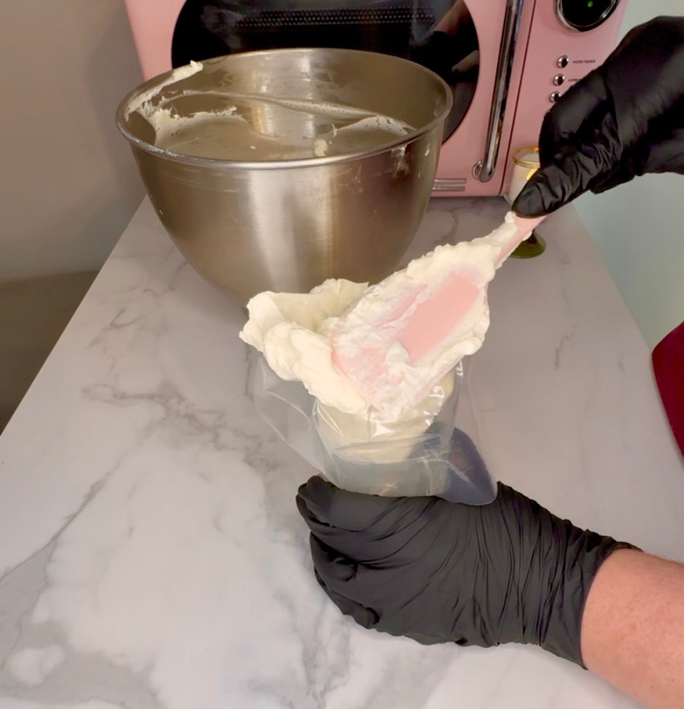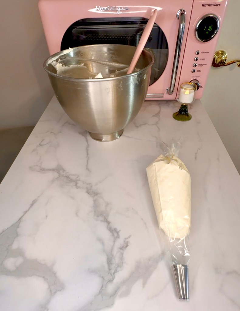 Then I just used my silicone spatula to put whipped frosting in a piping bag fitted with a tip that all came part of a set.