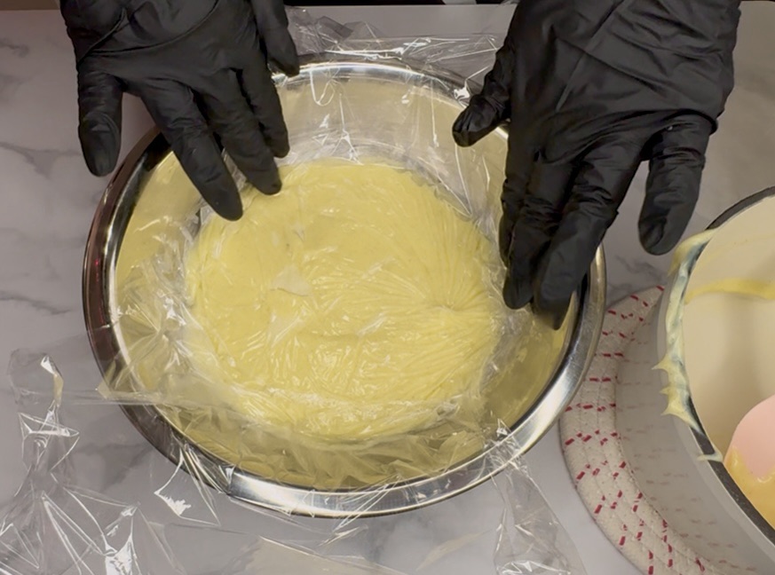4. Add butter and whisk, transfer to a different bowl and cover with Saran Wrap to cool in the fridge for 3 hours or so