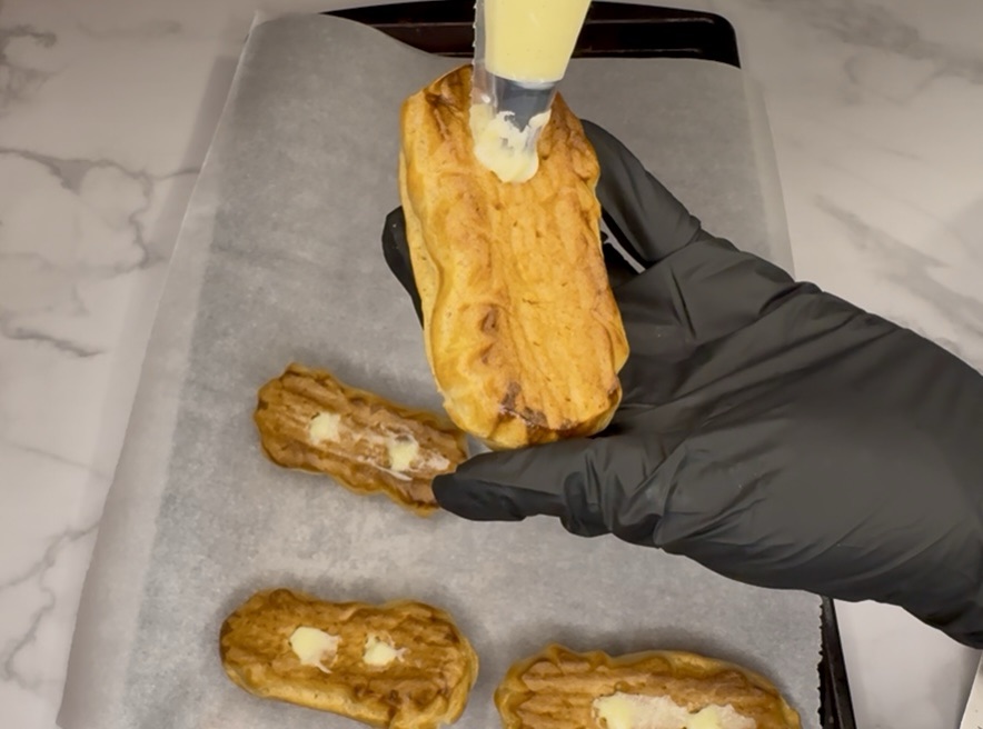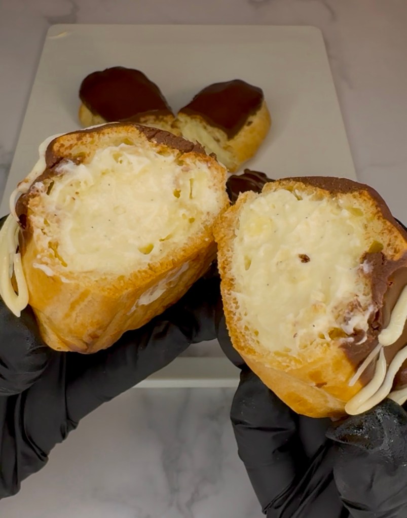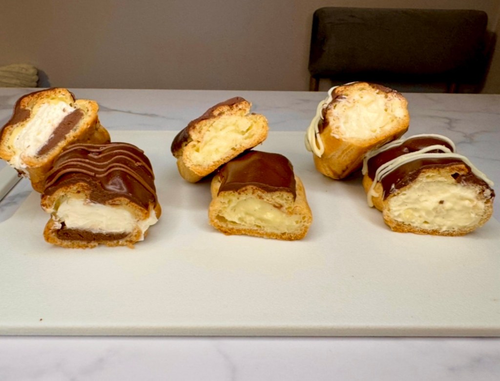 For the Chantilly cream eclairs, instead of making the X’s on the bottom of my eclairs, I cut them in half to fill them