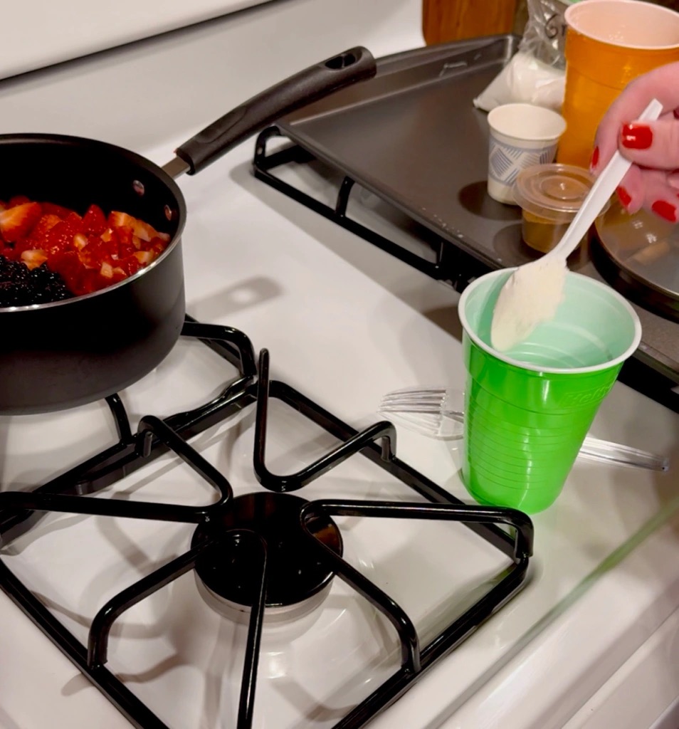 I keep it in these deli containers after it cools if I’m not using it right away, like when we went camping to make apple mountain pies.