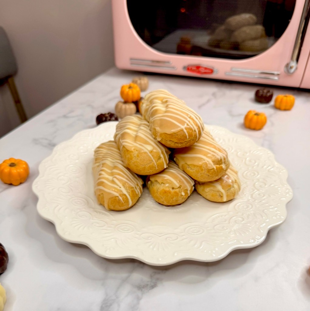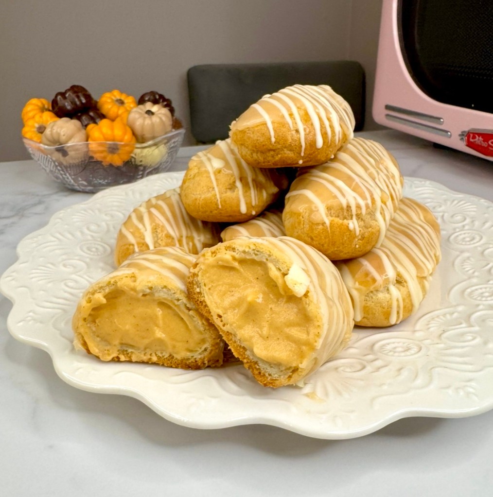 I’ve been on an eclair kick lately, practicing my choux pastry…so I had to try pumpkin spice eclairs! And oh my gourd! They’re amazing!