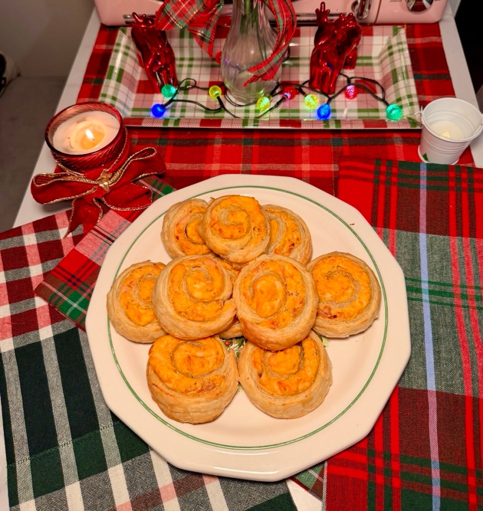 I made a shrimp dip crescent roll pinwheel for Christmas on my Patreon too.