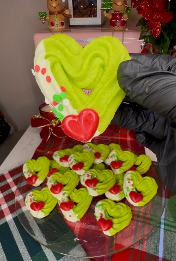 The story goes, if you give a grinch a delicious grinch themed Christmas cookie, their heart will grow three times to size! I was inspired by Sophia Mya Cupcakes on Facebook!