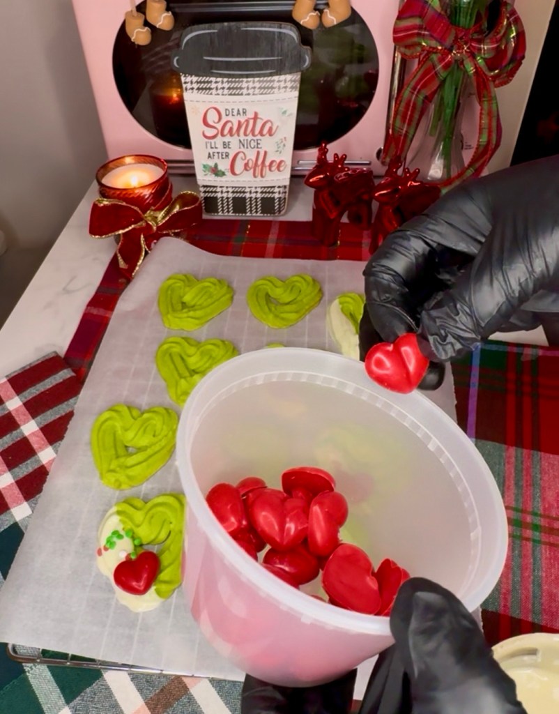 Then I just use an espresso spoon to add some Christmas sprinkles from the grocery store or Walmart or target, wherever you can find the Christmas sprinkles you prefer. Then let everything dry/harden.