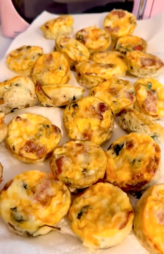 I like to lay them on some paper towels after because you want to grease your cupcake pan well so they pop out. I like to let a little of that extra grease come off on the paper towels, personally but you live your life babes. This recipe is very loosey goosey!