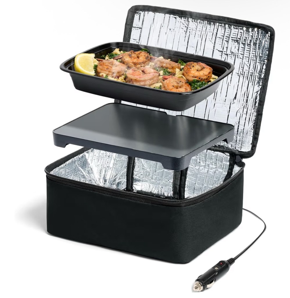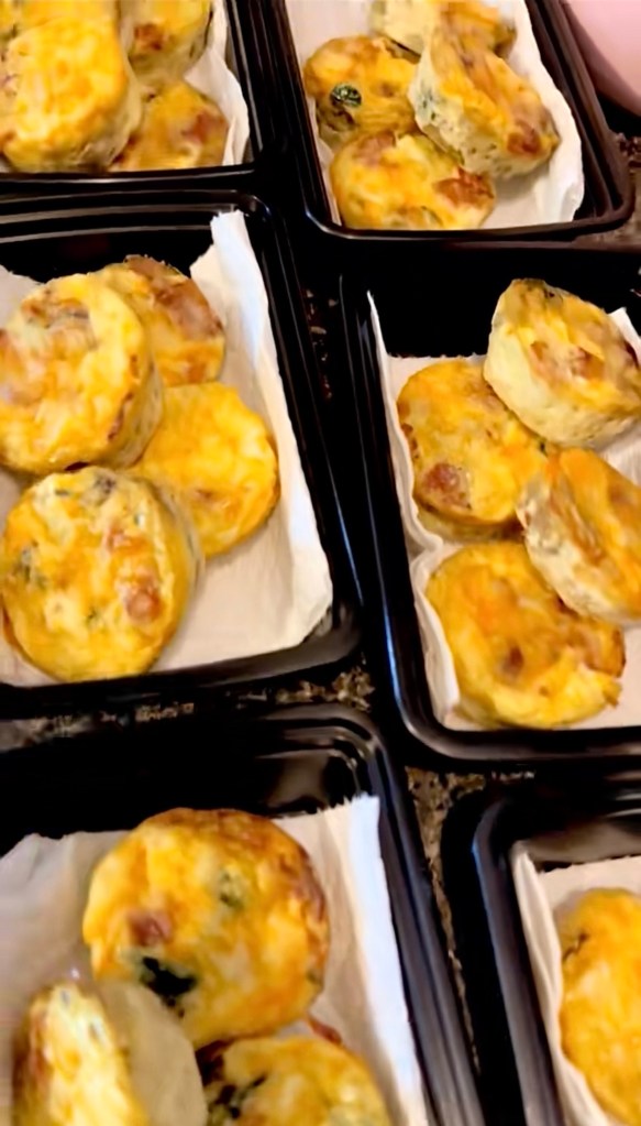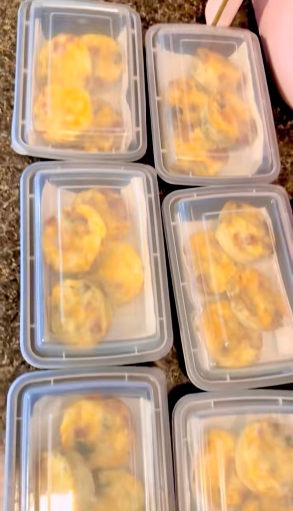 My husband and I have breakfast for the whole work week but just making these on the weekends. We use these meal prep containers because they’re cheap and they fit perfectly in this portable heated lunchbox that plugs into your vehicle. He keeps it in his work truck and he has warm breakfast and lunch!