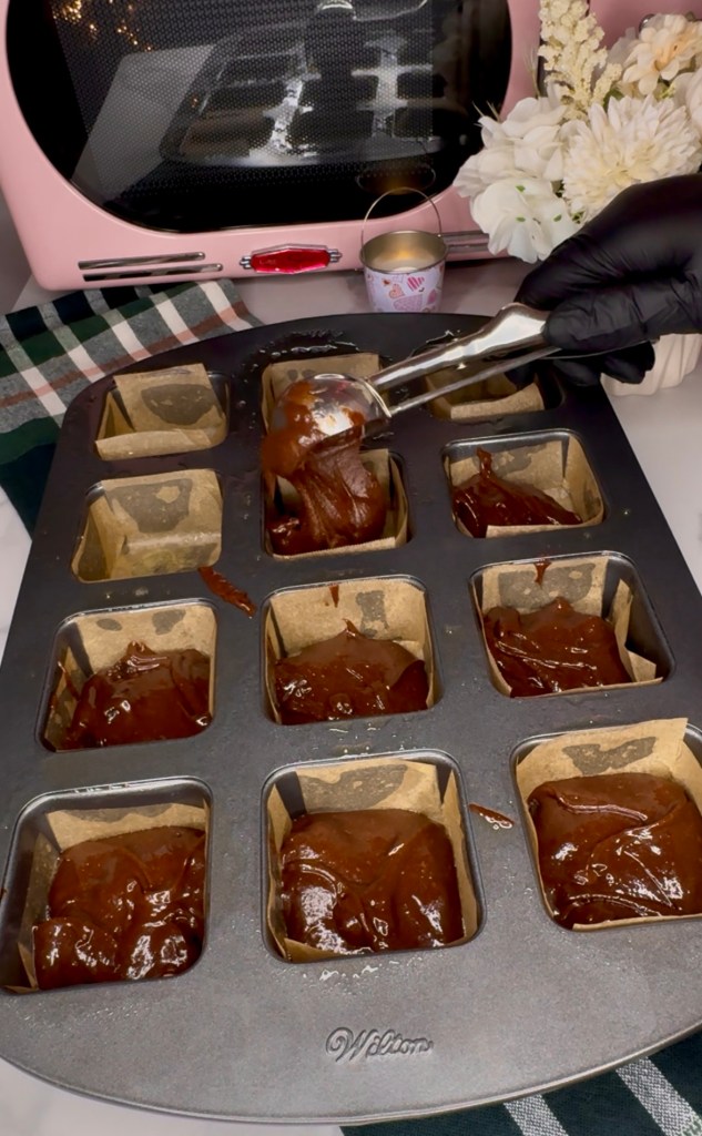 Ok, these are actually super easy to make because I just used box brownie mix to make them. Brownies is just one of those things that I usually end up enjoying box brownie mix over homemade, I don’t know why. But any brownie recipe will do too. I used this brownie pan from Amazon. It’s important to not online line them parchment paper but also some Pamela spray or else you won’t get them out.