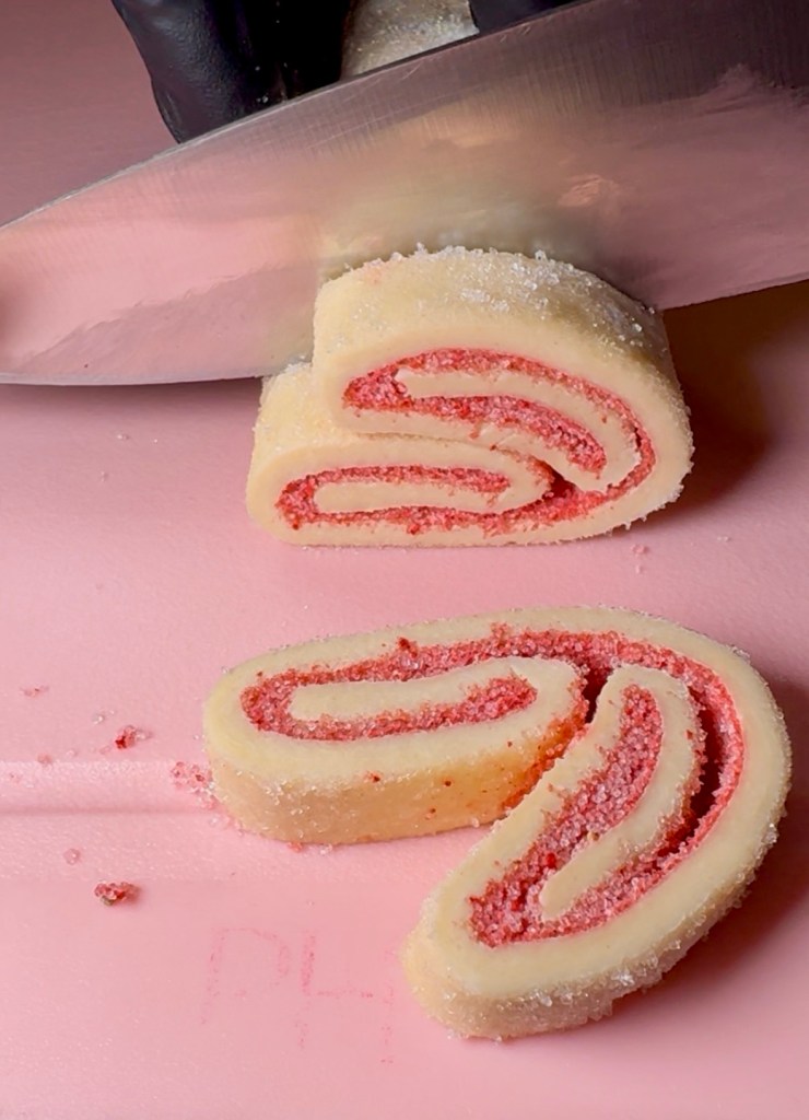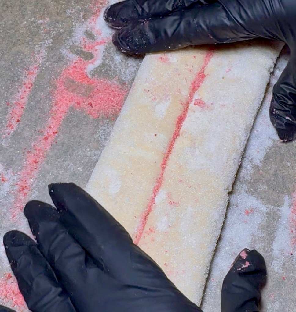 Add more freeze dried strawberry sugar mixture on the edges you folded over
