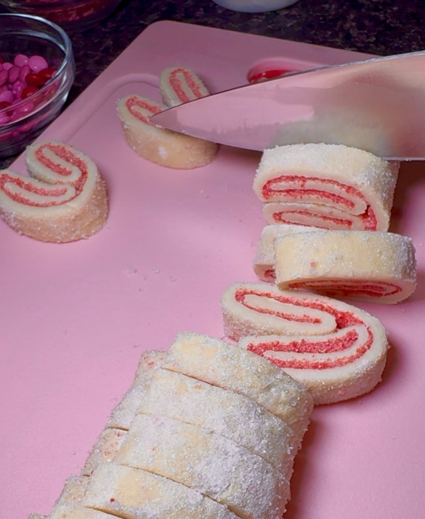 I put my palmier log in the freezer for about 10 minutes before cutting, it just makes it easier to work with and gives a cleaner slice