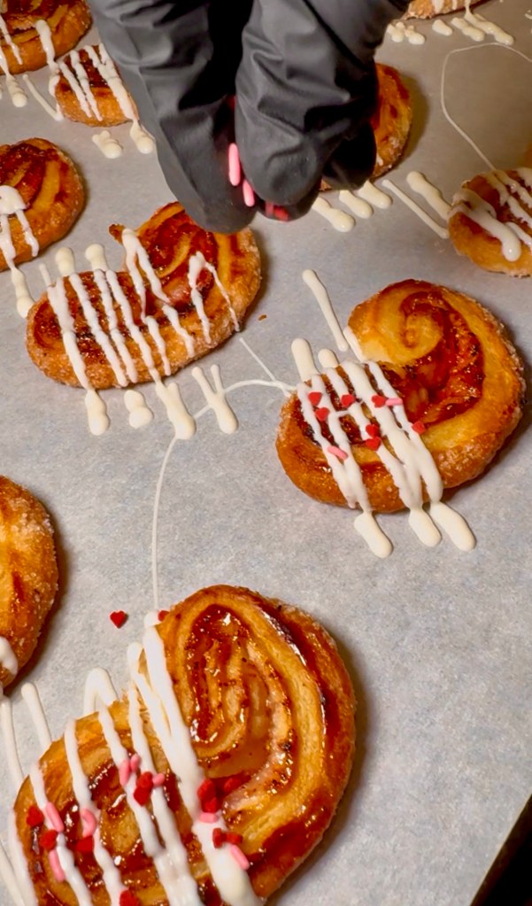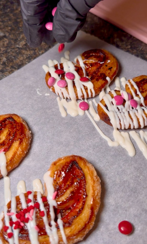 You can eat them as is, they’re delish! But if you want to elevate them even more, melt some white chocolate and put it in a piping bag and do a drizzle action