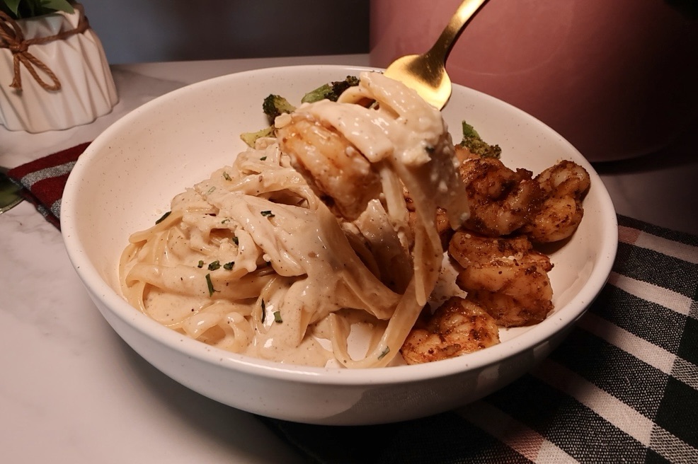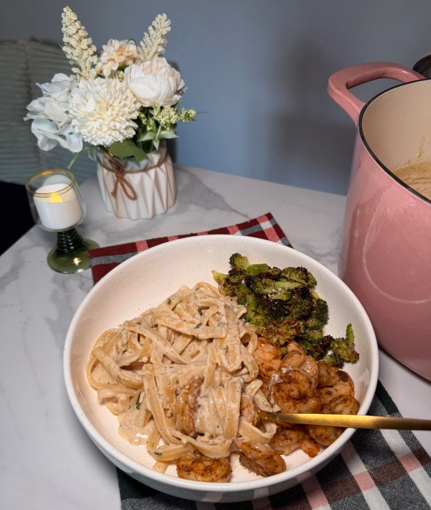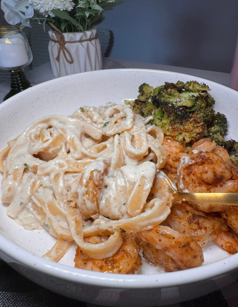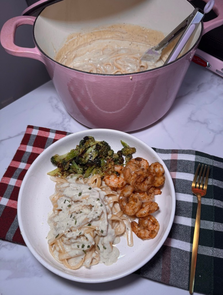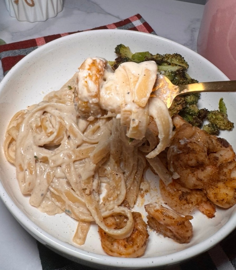 I added some air fryer broccoli and a quick shrimp made from frozen.